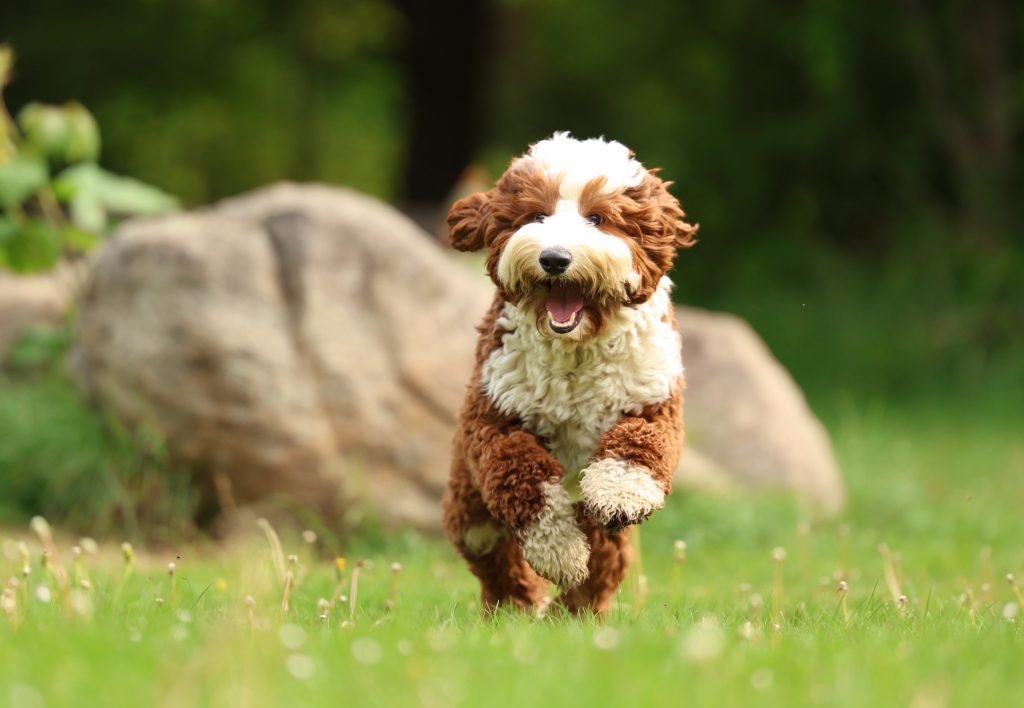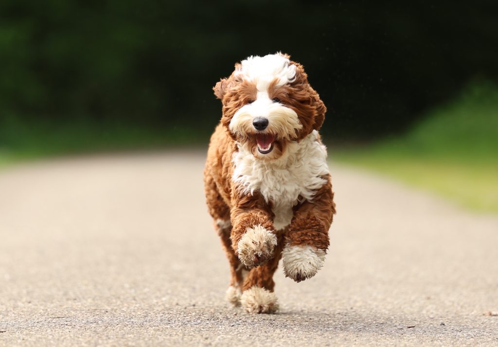 | Vacht: | Apricot/rode Tuxedo allergie-vriendelijke wavy fleecevacht |